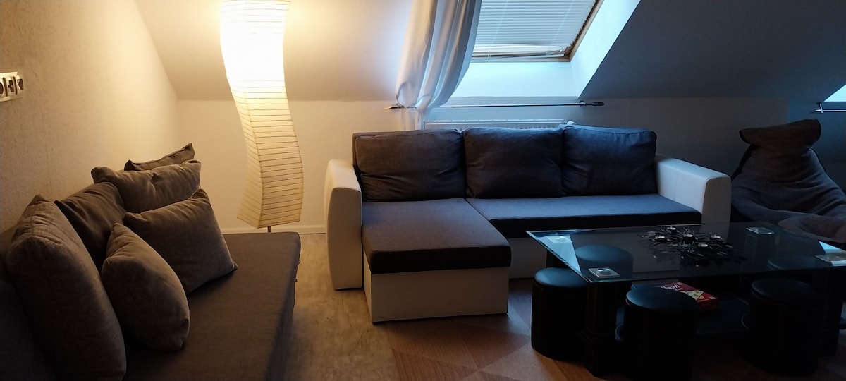 Alojamiento elegante con todas las comodidades. Ideal para viajes cortos o para estancias de negocios. El apartamento está muy céntrico y hay aparcamiento gratuito. Todas las tiendas están a poca distancia a pie. La unidad ofrece una cómoda cama doble, una pequeña cocina americana con nevera, placa de inducción doble, horno/microondas y cafetera (cápsulas). El amplio baño está decorado en un estilo vintage moderno.