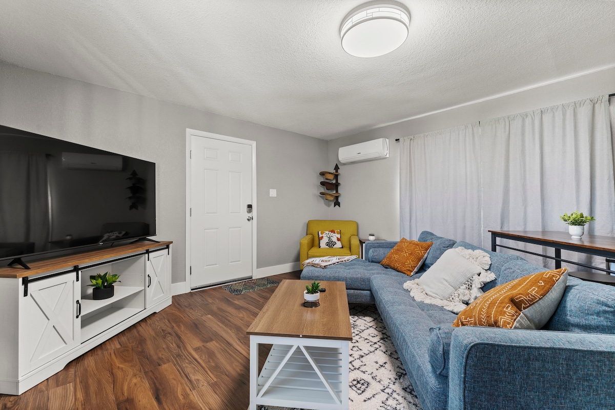 Disfruta de una estancia tranquila en el Cactus Flower Bunkhouse ubicado en el rancho rústico Hart. ¡Casa cómoda y moderna situada justo en un rancho de caballos de vaca, donde puedes ver los caballos, los campos de alfalfa y las puestas de sol más increíbles! ¿Viajas con tus caballos? También ofrecemos servicios de escala, ¡solo tienes que preguntar! Si hay más de dos huéspedes, tenemos un colchón de aire para el salón.