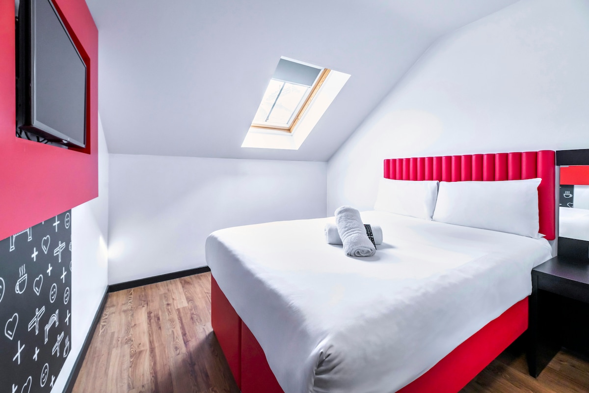 La habitación doble Executive ofrece un amplio refugio con una cama tamaño «king» y un baño privado con ducha de efecto lluvia. Las comodidades incluyen un hervidor eléctrico con té y café de cortesía, un televisor de pantalla plana de 43 pulgadas, conexión Wi-Fi gratuita, un espacio de trabajo para ordenadores portátiles, armario, cortinas opacas, servicio de limpieza diario y calefacción climatizada. Los espacios sociales de la planta baja incluyen un bar, un gimnasio y un restaurante. Ideal para el nómada digital.