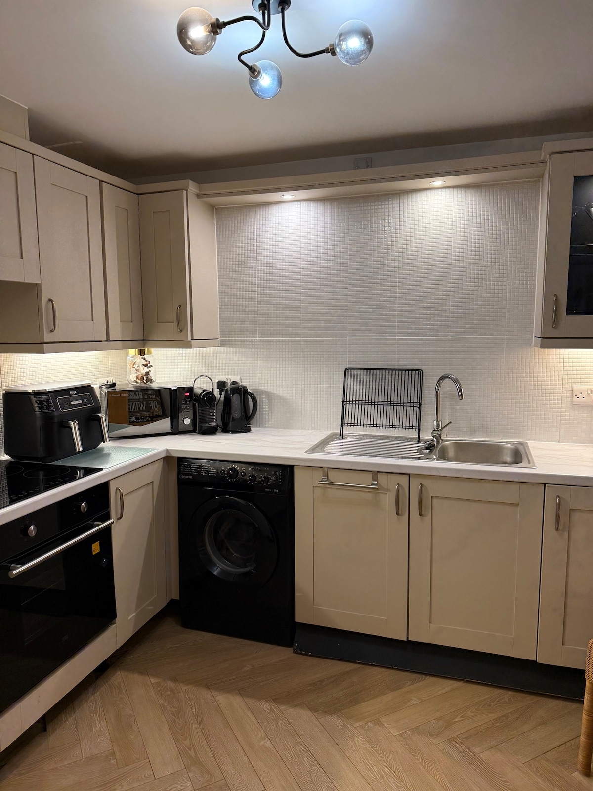 El departamento tiene un diseño moderno con un dormitorio doble, una pequeña habitación con una cama individual y un sofá cama. El estadio Murrayfield y la parada de tranvía están a 5-10 minutos caminando. Ideal para parejas/familias pequeñas que visitan la ciudad para aprovechar las muchas atracciones que Edimburgo tiene para ofrecer. Las rutas de autobús al centro de la ciudad están a pocos segundos y hay muchos servicios locales cerca (supermercados/cafés/bares/comida para llevar). La propiedad se limpia ampliamente También hay estacionamiento gratuito en la calle justo afuera.