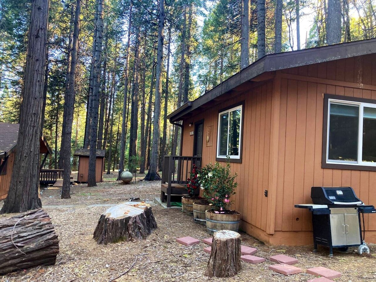Indulge in rustic-elegance, charm and comfort. Our luxurious fairytale cabin is built of warm toned cedar wood and floors: a gourmet kitchen, soaking tub for two, wood burning stove, hot tub, views. You will experience a full immersion in nature out every window and just one step out the door. Just a short ten minute drive from historic Nevada City, shopping, restaurants, theater, Deer Creek trail, Yuba River and hiking trails nearby. This studio cabin is perfect for couples or a solo retreat.