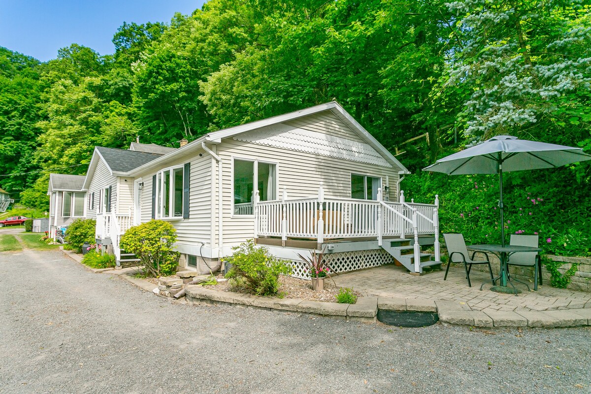 Si estás buscando un lugar para relajarte y relajarte con estilo, no busques más. Cómoda y estéticamente agradable esta elegante casa de campo renovada de 2 dormitorios está a solo diez minutos en coche del centro de la ciudad y a pocos pasos de Seabreeze y del pequeño puerto de barcos de Irondequoit Bay. Esta es una casa de campo operada por el propietario, no una operación de gestión en mal estado. Airbnb nos clasifica automáticamente como una propiedad "frente al lago", pero es más una propiedad con "vistas al lago". No hay acceso directo al lago, pero se puede ver desde el patio.