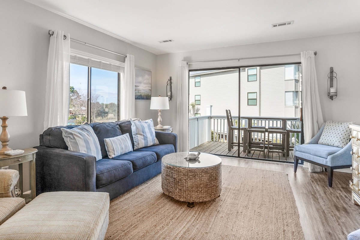 Disfruta de Seabrook todo el año. ¡Es espectacular! Condominio bien equipado de dos dormitorios/ dos baños en el segundo piso con magníficas vistas al pantano. Hermoso solárium para relajarse mientras disfrutas de una copa de vino/café. Disfruta de ciclismo en la playa, tenis, pickleball, golf y paseos a caballo. Se incluyen tres bicicletas para pedalear en la isla. El condominio está cerca del puerto deportivo Bohicket para puestas de sol y un corto paseo en bicicleta a Fresh Fields para ir de compras. La unidad incluye una tarjeta de servicios GRATUITA para el acceso al club. Ubicación fantástica. ¡Quédate y diviértete!