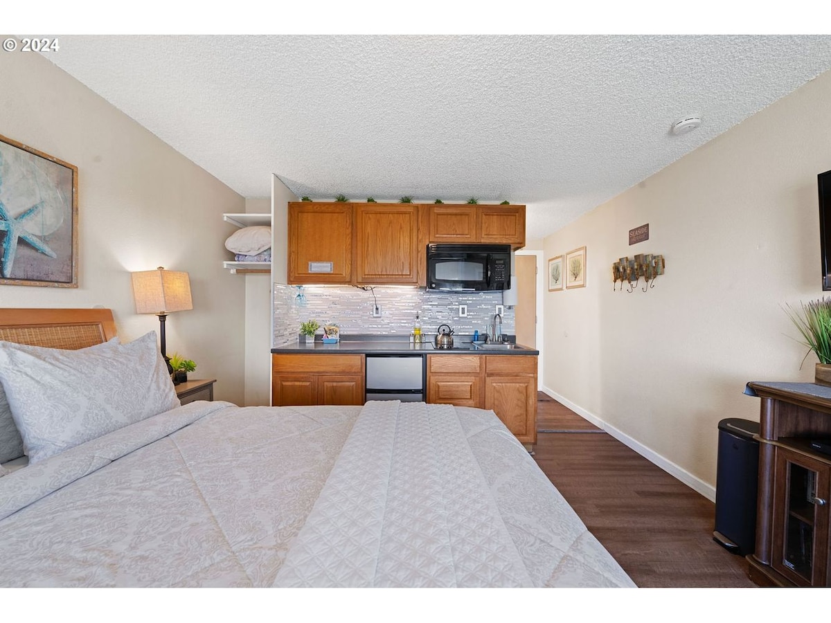 Este hermoso apartamento frente al mar se encuentra en el tranquilo extremo norte del famoso paseo marítimo de Seaside. A solo 10 minutos a pie del centro de la ciudad y de todas las atracciones, tiendas y restaurantes que ofrece Seaside. Una pequeña propiedad de 15 apartamentos, con aparcamiento en el sitio. Se admiten mascotas: 2 mascotas como máximo. 50 dólares por viaje. Este encantador estudio de arriba ofrece una cómoda cama tamaño queen, cocina americana, TV de alta definición por cable con reproductor On Demand y BlueRay, DVD y una chimenea electrónica también.