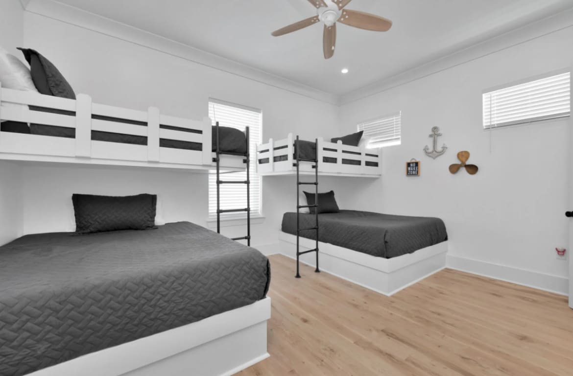 ***The private deeded beach access is a one minute walk from the front door.** Welcome to Between the Blues, an elevated coastal retreat tucked inside the sought after Summer’s Edge community along 30A. Designed for comfort, privacy, and effortless beach access, this home delivers the layout and location of dreams. Four true king suites (upstairs king suite has bonus mini fridge, coffee maker, and private patio) Dedicated bunk room with four twin beds Four and a half baths Sleeps 12