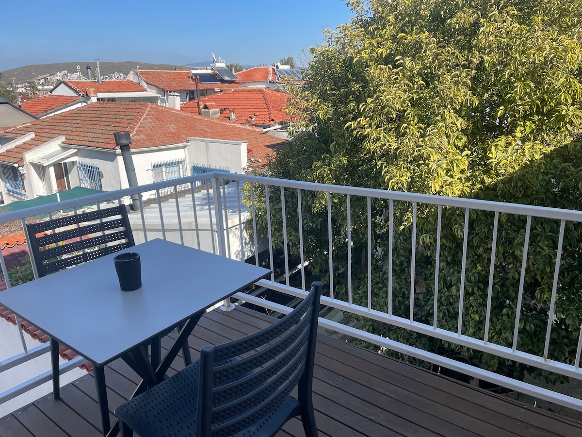 teos antik kente yürüyerek, sahil ve kaleiçine150 metre,Alaçatı,Şirince,Kuşadası,Urlaya çok yakın Havalimanına 45 dkk,plajlara araçla 3-5 dkk mesafede,restoran ve cafelere yürüyerek ,ortak havuz ve bahçesi olan apartımızda istenirse yaz aylarında kahvaltı ve günlük temizlik hizmeti verilir...