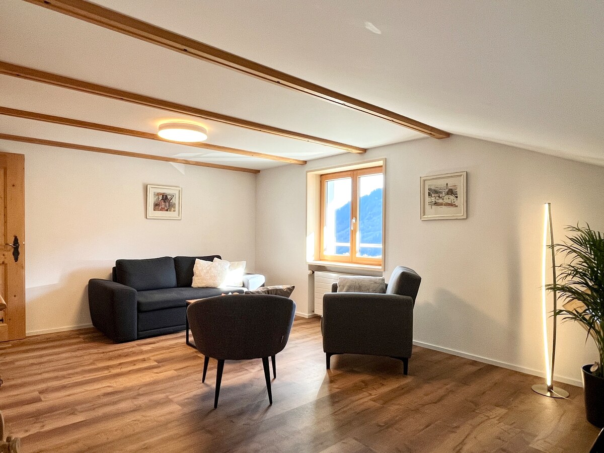 Willkommen in dieser renovierten 3.5 Zimmerwohnung im 3. OG, die modernen Komfort mit atemberaubender Bergsicht vereint. Die Wohnung verfügt über zwei gemütliche Schlafzimmer, eines mit einem Doppelbett und das andere mit zwei Einzelbetten. Im Wohnbereich erwartet Sie ein komfortables Ausziehsofa. Die komplett eingerichtete Küche und das stilvolle Bad bieten alles, was Sie für einen angenehmen Aufenthalt benötigen. Zudem nur wenige Gehminuten vom Dorfkern und den Bergbahnen entfernt.