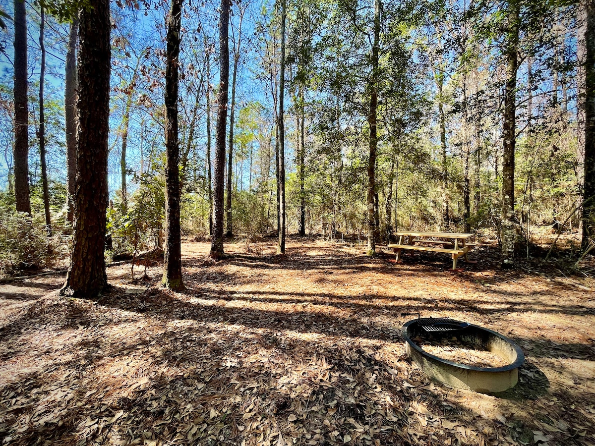 Relájate en Serenity Acres, tu refugio privado de glamping, ubicado en medio de 10 acres de bosques y campos. Disfruta de las noches más frescas de Florida junto al fuego y los días cálidos y soleados. Nuestra espaciosa tienda de campaña de 20 pies ofrece todas las comodidades de un hogar, incluida una lujosa cama tamaño king, una acogedora zona de estar, aire acondicionado y calefacción. Hay un baño completo en la propiedad solo para tu uso personal, como huéspedes de tienda de campaña. ¡Dúchate bajo la luna con agua caliente ilimitada! ¡Relájate en el fuego, bajo las brillantes estrellas del campo!