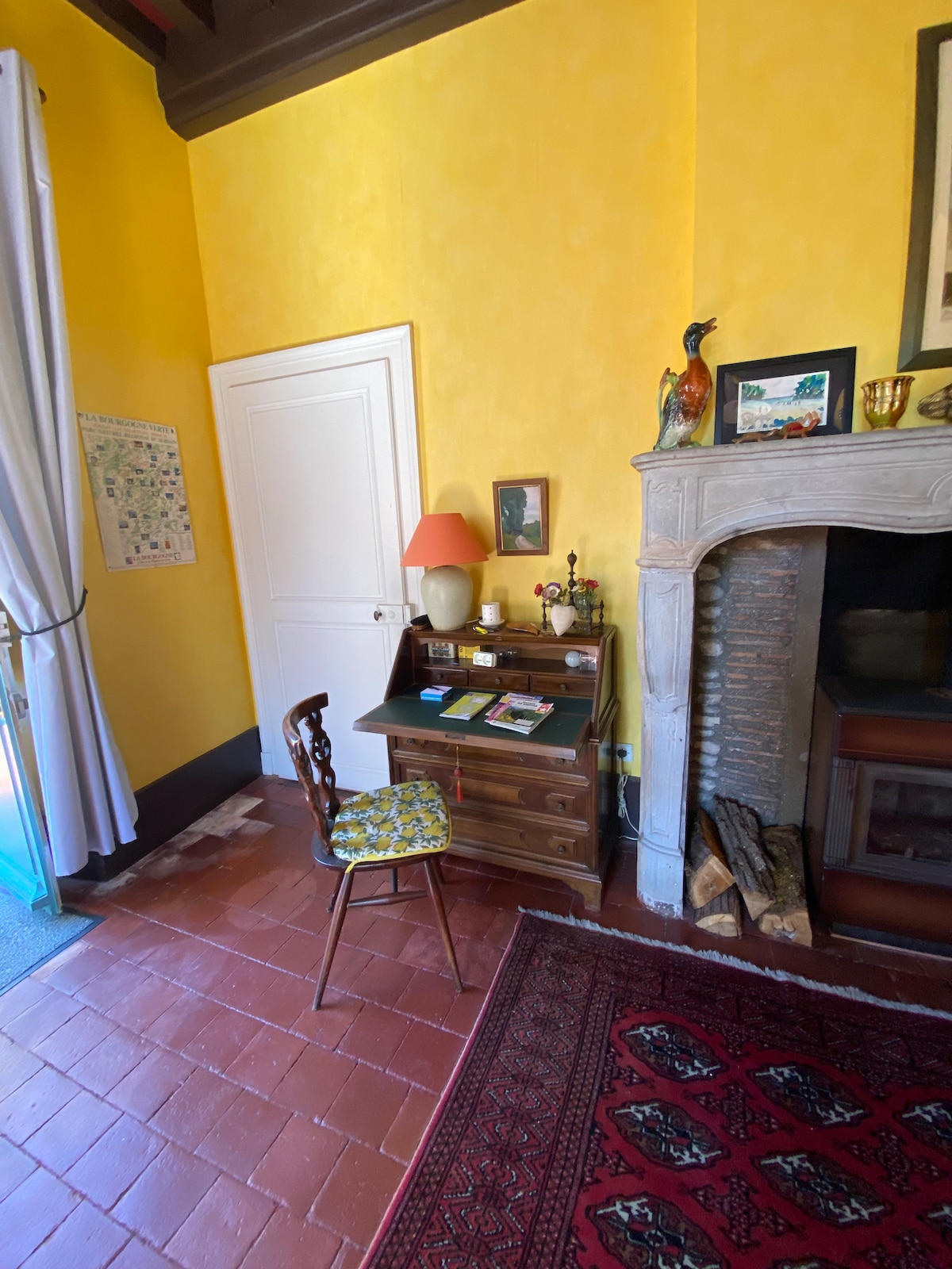 Escapa del mundo loco y quédate en esta casa de piedra en un tranquilo pueblo borgoñón en el corazón de la campiña de Auxois. Te esperan colinas verdes onduladas, senderos antiguos, aire fresco del campo, canto de pájaros y noches estrelladas. Es posible que pases la mayor parte de tu tiempo en este refugio de paz y tranquilidad y pasees un poco más allá del jardín cerrado. También puedes aventurarte y descubrir sitios de la UNESCO, pueblos en la cima de una colina, ciudades medievales y los lagos y senderos del Parque Morvan.