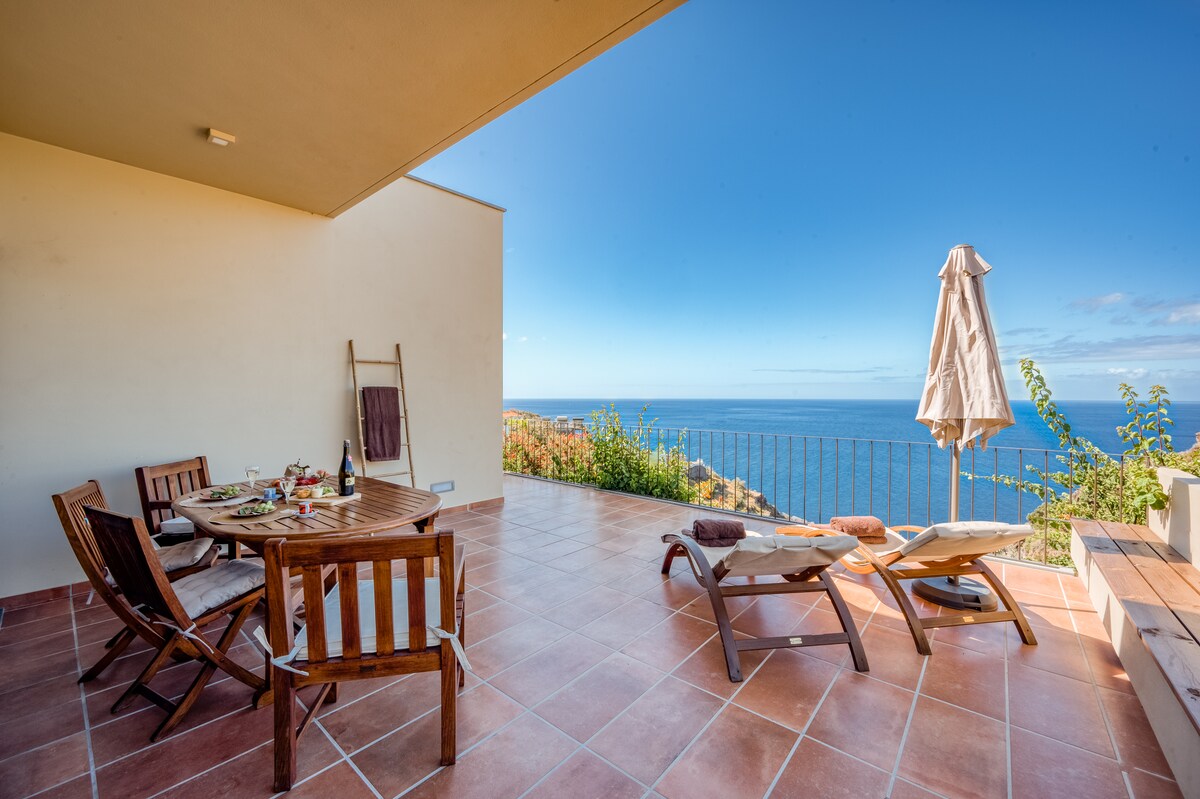 Esta magnífica y moderna villa privada Miradouro da Baleia (torre de vigilancia de ballenas) tiene algunas de las mejores vistas al mar y a las montañas de la isla, con una piscina infinita y ubicada en un lugar de primera calidad rodeado de espectaculares acantilados, tierras de cultivo, plantaciones de plátanos y viñedos, ¡fue restaurada con cuidado y buen gusto en 2018, ofreciendo una experiencia única de un alojamiento portugués al estilo de verano!