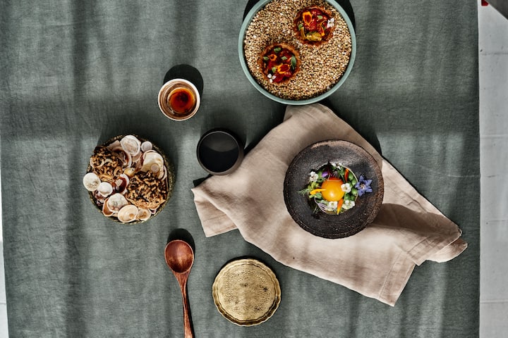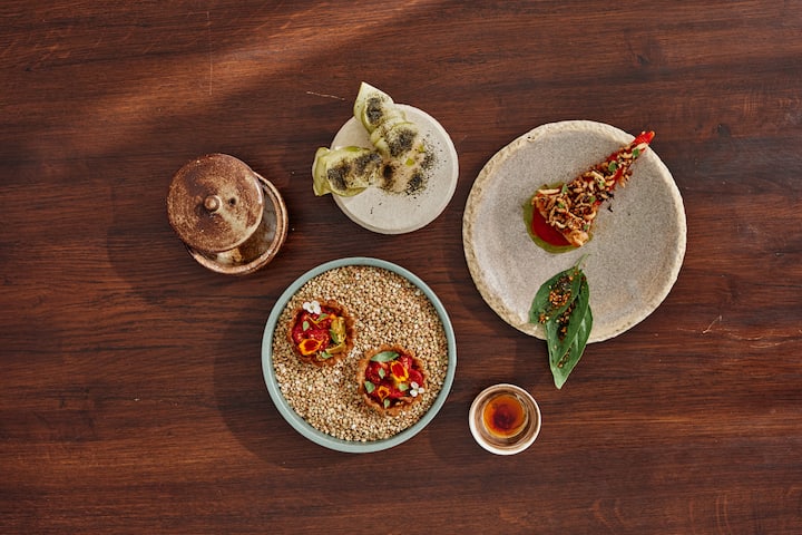 Saborea una deliciosa comida de varios platos con productos de temporada y otros productos locales.