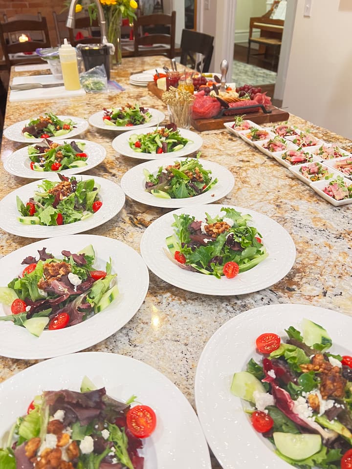 Para esta cena de 4 platos, cada menú se elabora a medida para cada cliente e incluye aperitivos, ensalada, plato principal y postre.