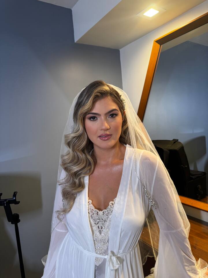 Puedes elegir entre rizos, un peinado medio recogido o un moño.