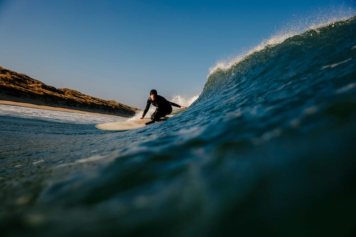 Durante una hora de tu sesión de surf, vendré y fotografiaré desde la playa, con un objetivo de 400 mm. Para no perderte nada.