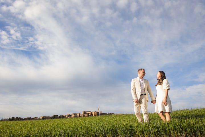 Sesión de fotos profesional con 45 imágenes de alta resolución totalmente retocadas. Ideal para parejas, propuestas de matrimonio, retratos personales o simplemente para un recuerdo especial de sus vacaciones en el corazón de la Toscana.