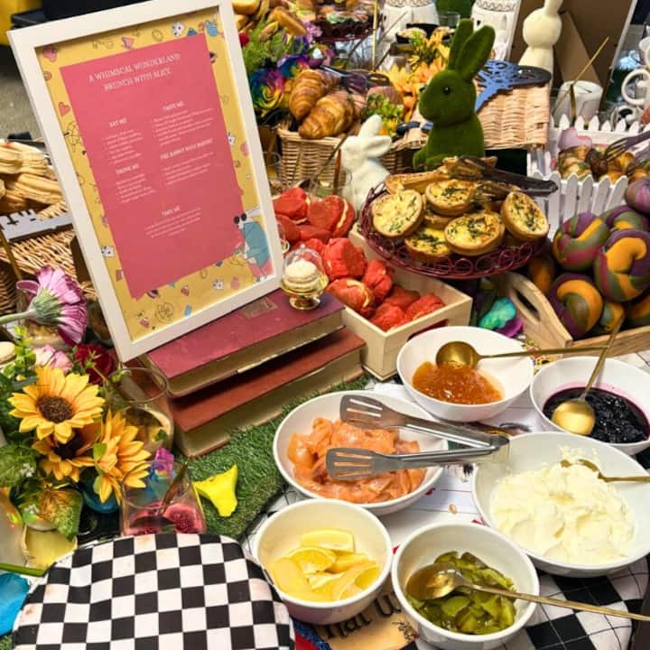 ¡Mejora tu estancia con nuestro brunch exclusivo de Airbnb en Wonderland! Crearemos una mesa vibrante para tu inmersivo banquete de brunch. Disfruta de los dulces "Eat me" como los panqueques de White Rabbit y los pasteles de Berry Cheshire Cat. Saborea las delicias de "Taste Me", que incluyen croissants de hongos mágicos, bagels arcoíris y elegantes tartas de tomillo, queso brie y pera. Bebe batidos “Drink Me”. Nuestro equipo dedicado se encarga de toda la configuración y el servicio, dejándote relajarte y disfrutar de una mañana verdaderamente mágica.
