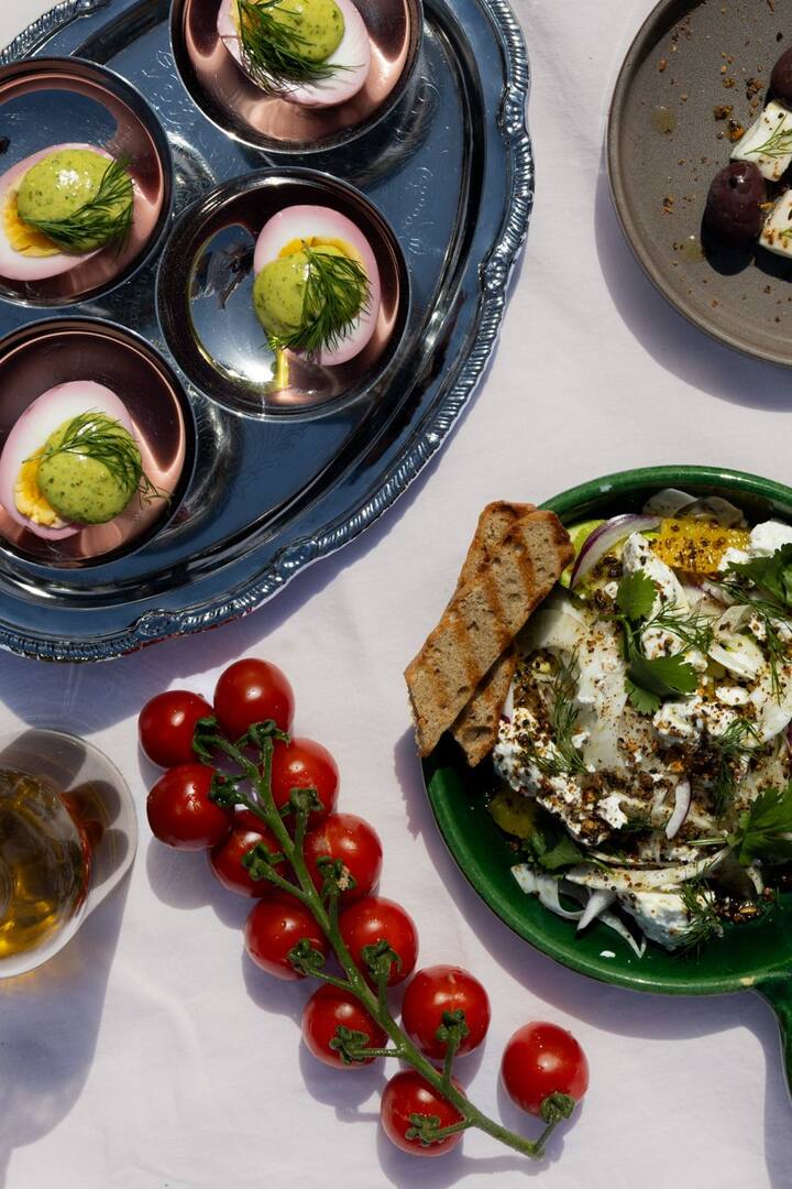 Ofrezco una variedad de platos para compartir, en forma de buffet caliente y frío, así como un postre.