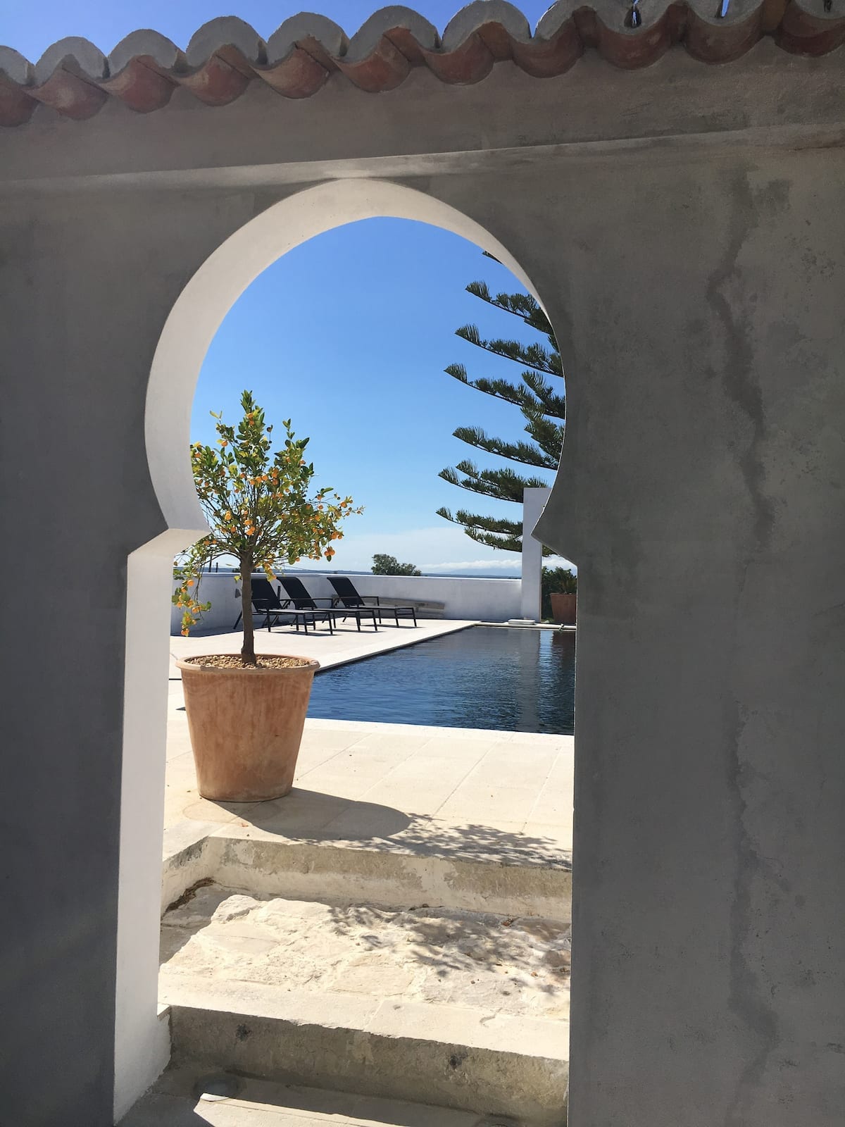 Situada en el pueblo de Azeitão, con vistas panorámicas sobre el Parque Natural de Arrábida y la ciudad de Lisboa, la Casa de la Valla se encuentra en una zona tranquila, entre los viñedos de Bacalhoa y la sala de montar a caballo del Convento de S. Domingos. Con una arquitectura distinguida y moderna, esta casa fue diseñada para tener espacios interiores espacios amplios y vívidos capturados por la luz natural. Ya sea por dos días o dos semanas, ven y experimenta la renovada Casa de Cerca, jardín y piscina.