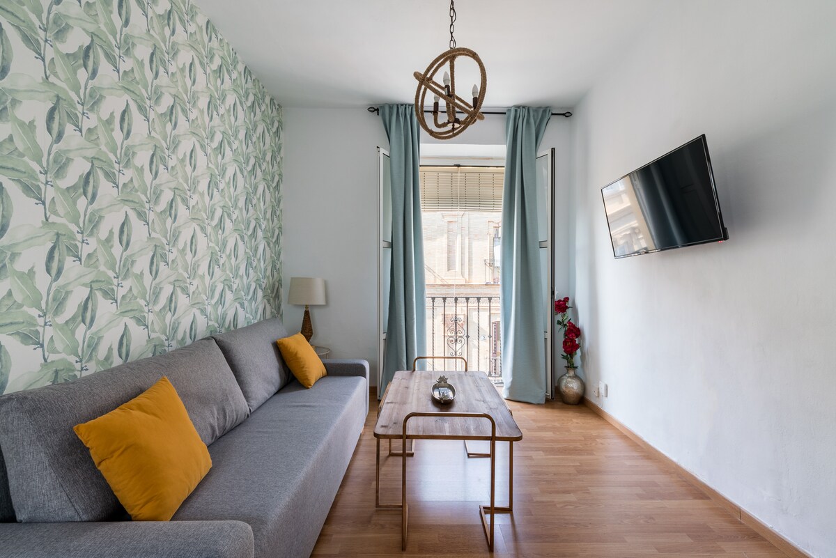 Este encantador apartamento se encuentra en la calle Tetuán, una de las calles principales del centro de Sevilla. El alojamiento está completamente renovado y dispone de todo lo necesario para garantizar el máximo confort. Tiene una capacidad de 5 personas ya que cuenta con un dormitorio de matrimonio, otro de una cama individual con armarios empotrados y un sofá cama para 2 personas. El ambiente es muy luminoso y cálido, ideal para familias y grupos de amigos Os estamos esperando!