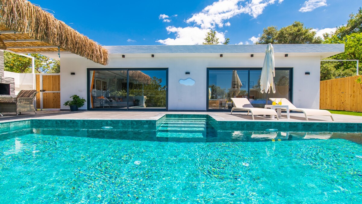 Villa de vacaciones con piscina climatizada y vistas al mar