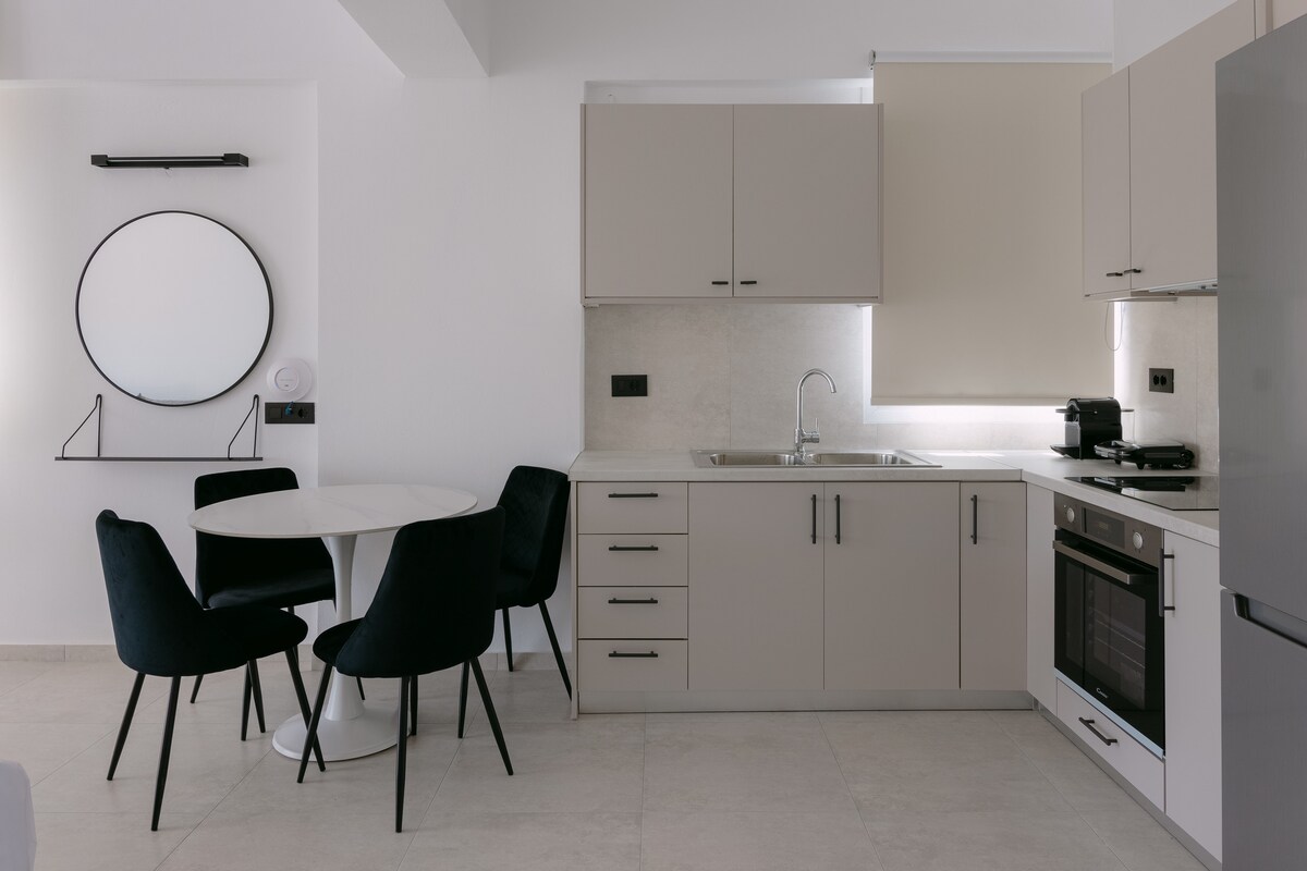Estancia en Harmony – Habitación II Disfruta de una estancia cómoda, ideal para parejas o personas que viajan solas. Tiene capacidad para 3 personas con una acogedora cama tamaño king y un sofá cama (1,50*1,80), balcón privado con vistas a las vibrantes calles. Situado cerca de la playa, tiendas, cafés y restaurantes y cerca de la playa y la autopista. Justo debajo de los apartamentos hay una tienda de suministros agrícolas, y la autopista cercana permite un fácil acceso a toda Creta. Ten en cuenta que durante tu estancia puede haber algo de ruido de camiones o tráfico.