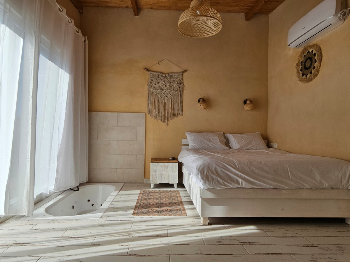 Un rincón de tranquilidad, naturaleza y amor. Relájate en nuestro espacio tranquilo y elegante, una unidad elegante en el corazón del kibutz, rodeada de vegetación y encanto. La unidad se encuentra en el segundo piso, por encima de nuestra casa, que alberga de todo corazón, con total privacidad y un ambiente cálido. A poca distancia del paciente, en las afueras del kibutz, le espera un tiempo de pareja de calidad, en un aire diferente, a un ritmo diferente, con un estilo diferente.