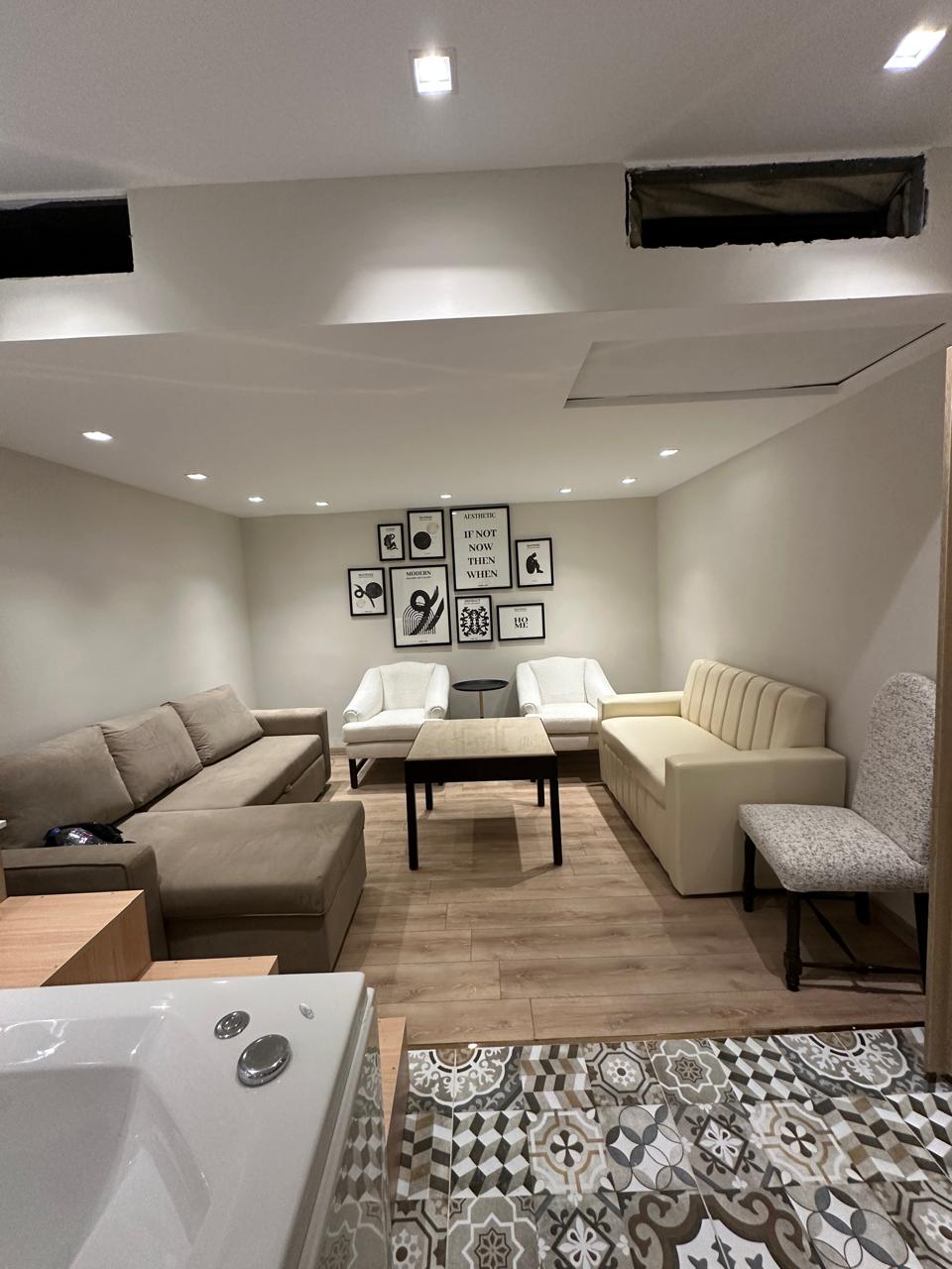 The luxury chalet is 150 square meter bigger than a luxury presidential suit in any 5 stars hotel, fully air-conditioned. Features a fully equipped modern kitchen, a dining table, two living rooms, a 02 modern on-suite bedrooms where the guest enjoys high quality branded mattresses, a big sofa-bed, a private indoor heated jacuzzi, a 75"smart screen, a safety boxes . Loaded with top class appliances, a big fridge, a dishwasher, a stove, built-in oven, built-in microwave & Waching-machine.
