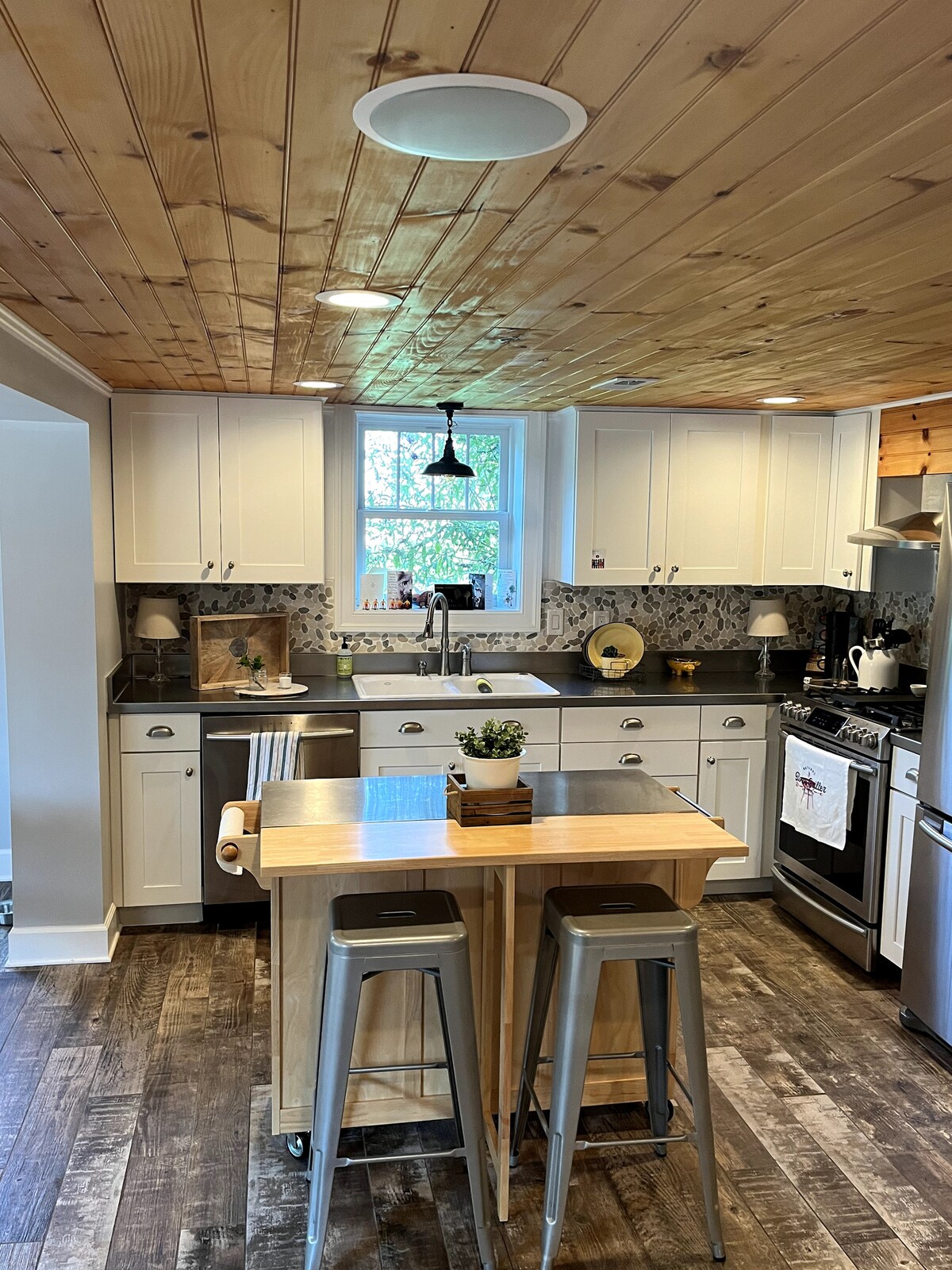 Disfruta del paisaje de montaña en esta tranquila escapada en el South Fork del río Shenandoah. La gran terraza cubierta es el lugar perfecto para tomar un café o ver la vida silvestre. ¡Las estrellas son increíbles! Trae tus canoas y kayaks y accede al río desde la zona común. Luray Caverns es una atracción popular a solo 10 minutos, y kilómetros de rutas de senderismo y cascadas te esperan a 15 minutos en el bosque nacional de Shenandoah. Skyline Drive, que asombra con sus vistas al valle, también está a solo 15 minutos.