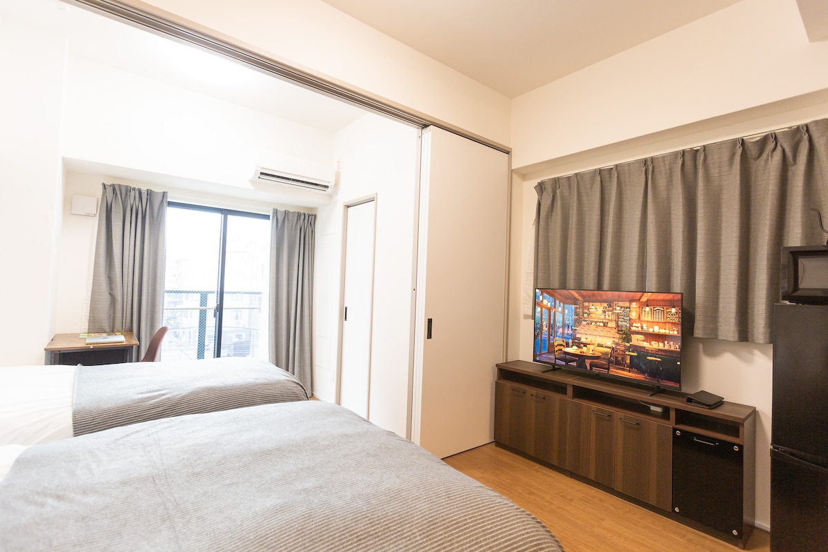Cerca de Shinsaibashi,Namba.2 camas dobles y ducha