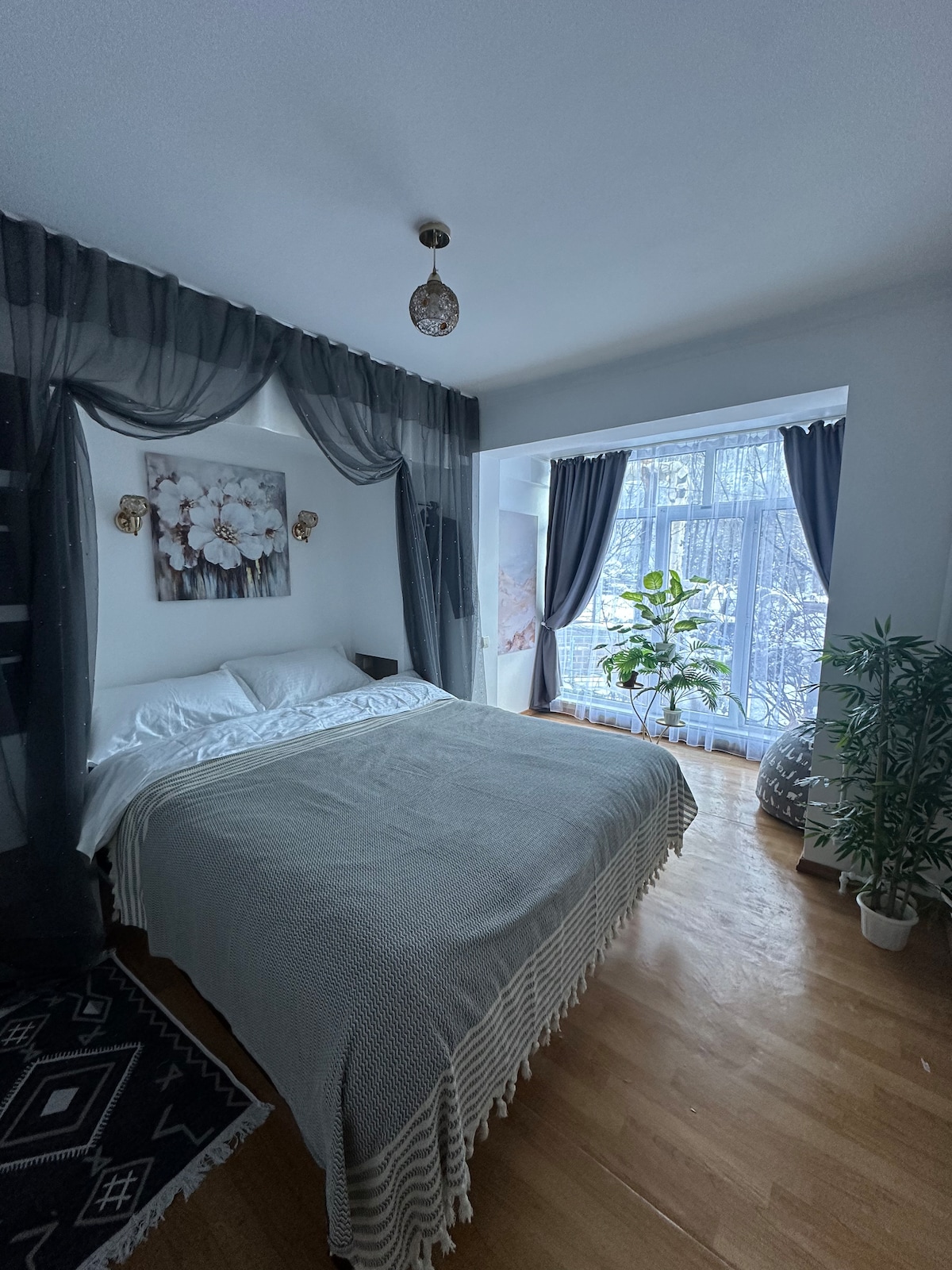 ¡Te damos la bienvenida a tu estancia ideal en Almaty! Disfruta de impresionantes vistas a la montaña y a la ciudad desde tu ventana. - A 7 minutos de la estación de metro. - Cama cómoda y sofá acogedor. - Cocina totalmente equipada. - Baño moderno con toallas y artículos de tocador limpios. - Wifi y SmartTV. ¡El apartamento está en un distrito seguro y animado, cerca de cafeterías, supermercados, farmacias, centros comerciales! Llegada autónoma disponible Siempre listo para ayudarte. No dudes en enviarnos un mensaje en cualquier momento. ¡Relájate, explora y siéntete en casa!
