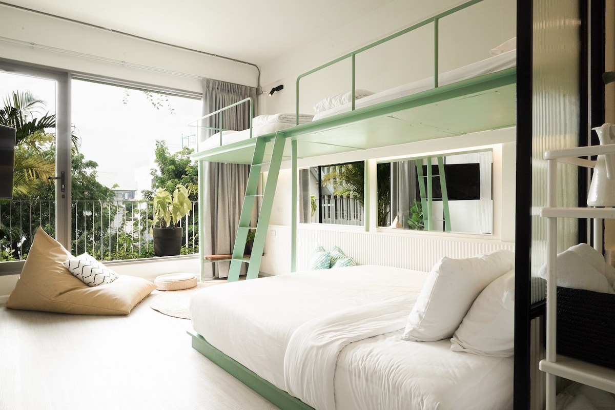 Explora tus recuerdos de la infancia y comparte un buen rato con los seres queridos. ¡Disfruta de la ubicación ultracómoda, justo en la bulliciosa carretera de Sukhumvit, a solo 20 metros de la estación BTS Phra Khanong! Ubicación súper conveniente para explorar Bangkok. Sé bendecido con la comodidad de “Casa lejos de casa”, que incluye: * Sala de estar y baño privados. * Cocina compartida y lavandería (gratis) * Wifi gratuito y Netflix * café y refrigerios incluidos durante todo el día Ven a jugar a Hide and Seek con nosotros :)