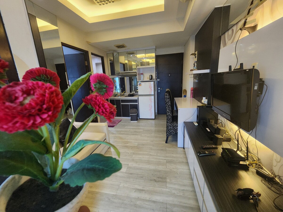- Apartamento nuevo con instalaciones de hotel de 3 estrellas (piscina, parque infantil, regazo. Cesta, gimnasio, mini mercado y lavandería) - Estudio Kamar berkonsep industrial dgn fasilitas lengkap, TV inteligente +Netflix, wifi completo, cocina y panas inflables. - Parkir Lobi Free, parkir sótano berbayar - Ubicación estratégica porque está flanqueada por el plan de peaje MERR & OERR. - A 1 minuto de Well Tambak Toll Gate. - A 5 minutos del aeropuerto de Juanda T1. - A 7 minutos de Waru Roundabout & Jl. Ahmad Yani: 11 menit ke Transmart, CITO Mall y Galaxy Mall