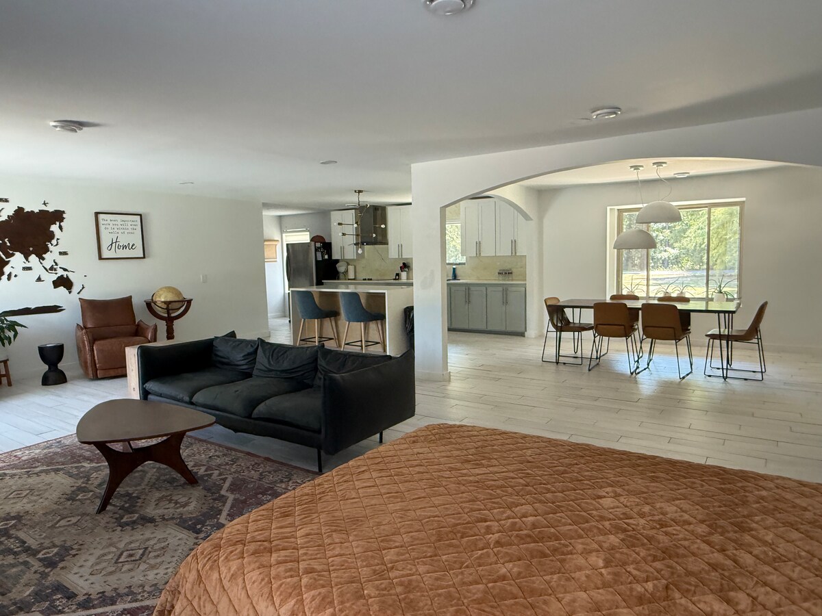 Unwind in style at our elegant 3-bedroom, 2-bath countryside retreat, just 2 miles from town. Whether you’re visiting for business or a well-deserved getaway, our beautifully designed home offers the perfect blend of comfort and class. Come solo, with a partner, or bring the whole family—there’s plenty of space for everyone to relax, recharge, and feel right at home.