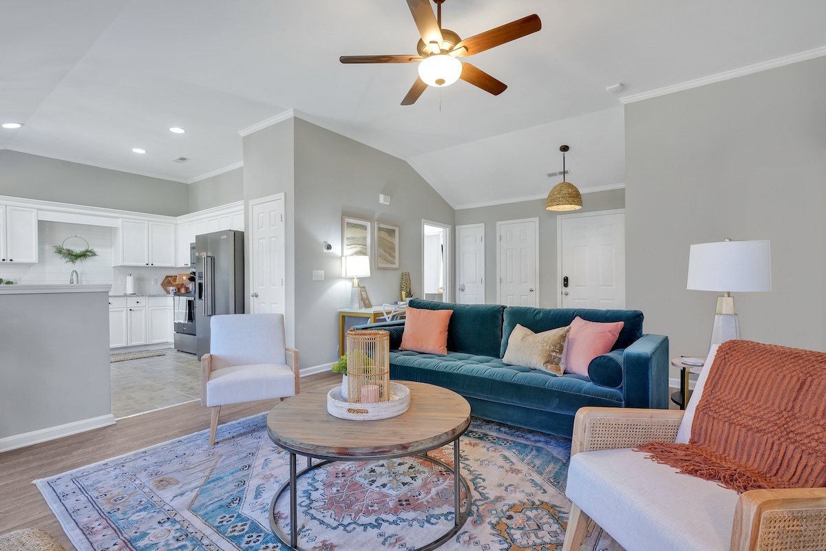 Divertido y animado, ¡este lugar especial es fácil de considerar tu hogar lejos de casa! Zona tranquila para familias a 15 minutos del centro de Wilmington con acceso a todo lo que nuestra increíble ciudad tiene para ofrecer... restaurantes, tiendas y entretenimiento. A 20 minutos de Wrightsville Beach, a 12 minutos de Carolina Beach y a 20 minutos del aeropuerto ILM. Patio trasero grande y totalmente vallado. ¡Cocina completa, zona espaciosa y divertidas habitaciones temáticas de Frenchie! Se admiten perros solo bajo petición y con una tarifa por mascotas.