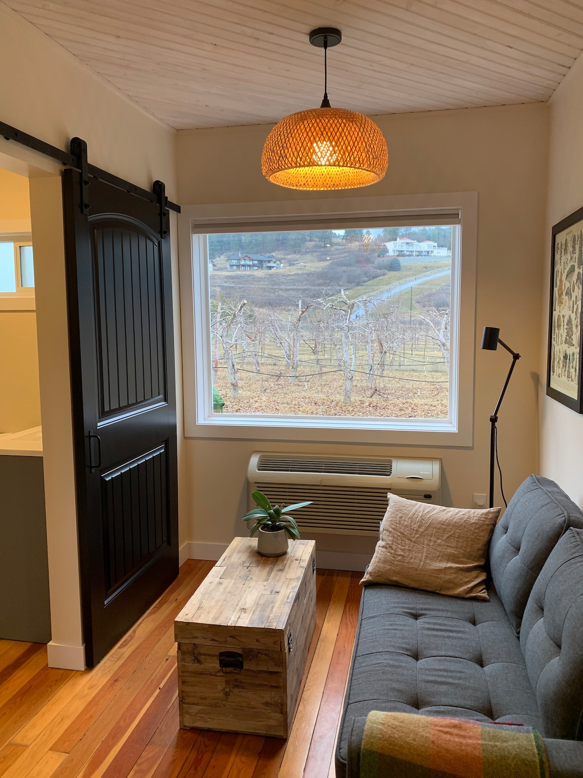 Ven a disfrutar de una escapada tranquila y única. Ubicación perfecta para disfrutar de los lagos y las montañas en los meses de verano, y de los deportes de nieve e invierno durante los meses de invierno. Impresionantes vistas del atardecer y las montañas desde tu propia terraza privada con vistas al lago Okanagan. El piso principal tiene el dormitorio principal, el baño, la sala de estar y la entrada a una terraza privada. El loft superior tiene una cama individual y un colchón doble. Nota: La cabaña tiene 500 pies cuadrados No hay cocina, solo nevera, microondas, cafetera y vajilla.