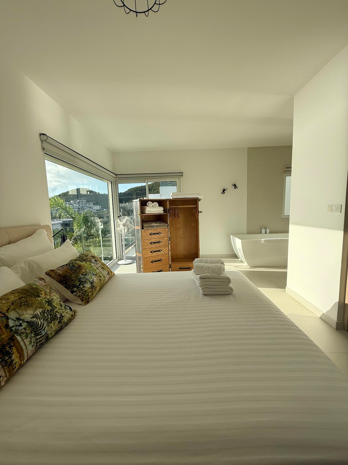 Despierta con la magnífica vista panorámica de la laguna en el último piso, rejuvenece tu cuerpo con un refrescante chapuzón en la piscina infinita privada de la azotea con un café o bebida tropical. Date un paseo de 10 minutos hasta la famosa playa de la bahía de Mullet y toma unos cuantos cruasanes franceses junto a la plaza. Después del atardecer, disfruta de los abundantes bares y restaurantes del vecindario o toma 5 minutos en coche hasta Maho, donde encontrarás una gran variedad de restaurantes, casinos y clubes o Porto Cupecoy para el lugar romántico.