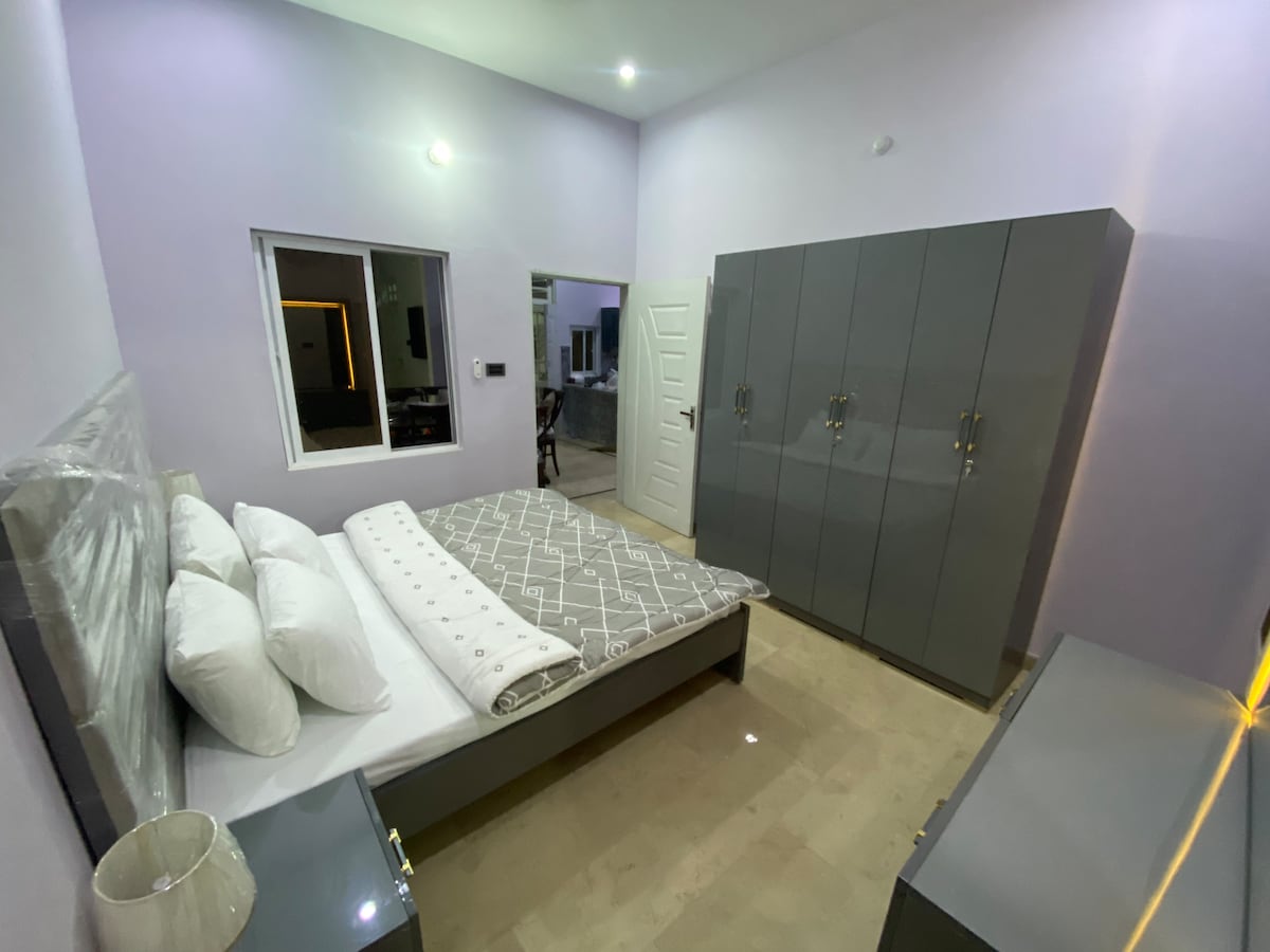 An exquisite inn with amenities provided at a safest and well developed location of Karachi. Gulshan-e-Iqbal, located in close proximity to Airport, Hospitals, Malls, Restaurants, Halls and Amusement parks. The house is fully furnished with decency. Our efforts are not only to meet your necessities but also to provide a safe, peaceful and memorable stay. We assure our best services at most competitive rent and sperately charge drinking water and cleaning. Kindly get pre-approval before book.