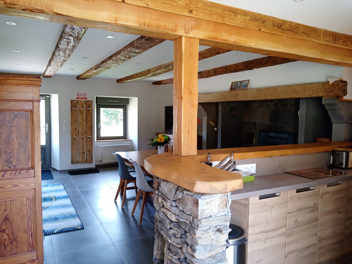 Ubicada en el campo, a 4 kilómetros de Condat y junto a nuestra casa, se encuentra nuestra granja Cantal conocida como «longère». Paredes de piedra gruesa, vigas de madera, amplio salón con chimenea tradicional y estufa de leña, televisión por internet, dos dormitorios, baño y cocina equipada. Disfruta sentado junto a un fuego crepitante de leña en invierno o a la sombra del viejo tilo con una copa de vino disfrutando de las espectaculares vistas en verano. Sea cual sea la época del año, disfrutarás de la comodidad y el encanto de la Longère.