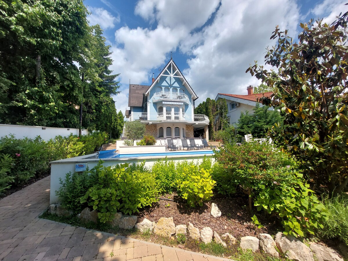 Balatonfüred központjában, 400 m-re a strandtól és a Tagore sétánytól található teljesen felújított vendégházunk 6 hálószobával és 6 fürdőszobával(max 19 fő), medencés kerttel és napozóterasszal várja vendégeit. A légkondicionált szobák hűtővel felszereltek. Közös teakonyha mosógéppel, tágas étkező és jól felszerelt konyha áll rendelkezésre. Közelben éttermek, üzletek, bicikliút, kikötő. Zárt parkoló és ingyenes WIFI biztosított.