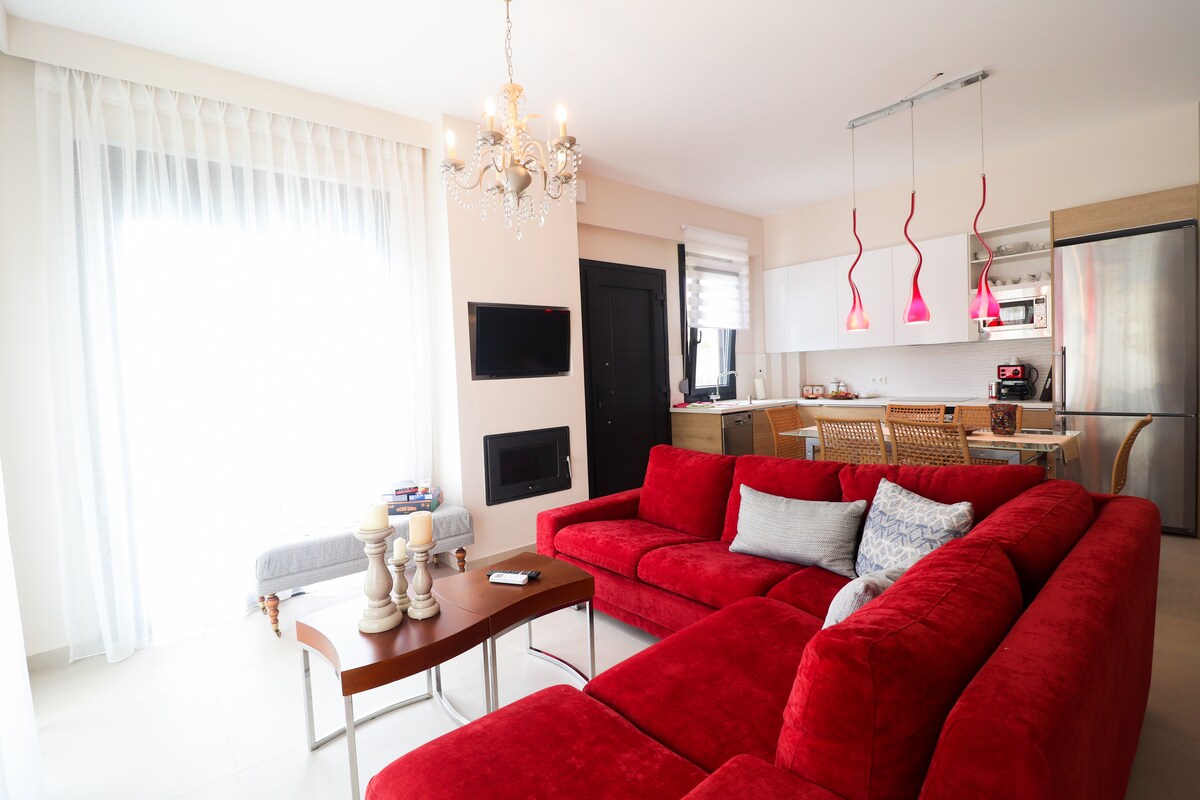 Una excepcional villa de verano de 55 metros cuadrados, bellamente equipada y amueblada con dos dormitorios, 2 baños (ducha interna y externa), así como una sala de estar y cocina. Contra Mare constituye un destino ideal rodeado por un gran patio verde a solo 60 metros de la hermosa Trani Ammouda, que ha recibido el estatus de playa «Bandera Azul» frente a una impresionante vista del monte Athos. ¡Ideal para unas relajantes vacaciones de verano en familia sin preocupaciones!