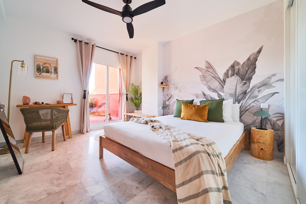 Acogedor apartamento en la montaña decorado con lujo de detalle y junto a la playa más natural de Marbella. Ubicacion tranquila y perfecta para visitar Málaga y la Costa del Sol. Ideal para disfrutar todo el año con la familia y amigos, trabajar en remoto y jugar al golf! Entorno natural | Terraza exterior | Pool | Chill-out | BBQ | Fire pit | Parking | Workspace | Full-equip 2 min Playa Natural | 15 min Shopping center | 10 min Marbella Old Town | 25 min Aeropuerto | 35 min Malaga Old Town
