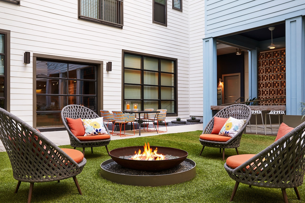 Este alojamiento tan sofisticado tiene todo lo necesario para una estancia de lujo. Todo el edificio fue cuidadosamente diseñado para estancias cortas. Si te hospedas a largo plazo, nuestros huéspedes siempre estarán atendidos. Aparca con la facilidad del aparcacoches, disfruta del salón de la cafetería o asiste a una clase en el estudio de yoga interior. Además, no te pierdas el ambiente elegante de la piscina en la azotea. Este loft urbano y elegante está situado en el lago Ladybird, rodeado de naturaleza y a poca distancia a pie de todo lo que la hermosa Austin tiene para compartir.