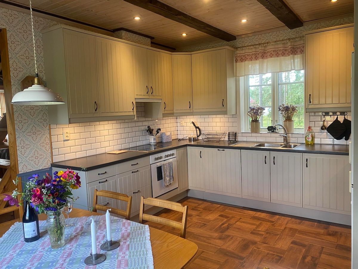 Meet our lovely red cottage in Småland surrounded by forest, hills and lakes. With all the comfort you need for a pleasant stay. Enjoy a cozy evening by the wood stove. The house has a big private garden where you can relax and make a campfire at the fire pit. Go fishing or take a swim in one of the lakes nearby. And maybe you see deer, foxes or moose from our sunny porch. Go skiing at the ski-slope, visit a moose park or go down the zippline. April-October we rent out 2 sit-on-top kayaks.