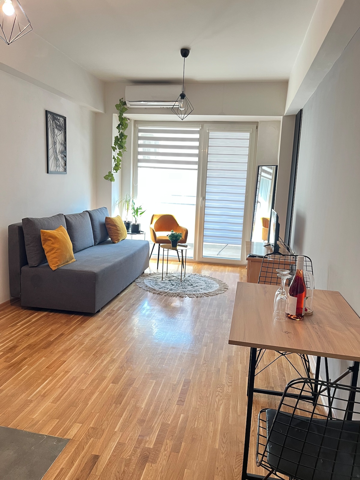 Modern, one-bedroom apartment with balcony, fast Wi-Fi, A/C and free parking. Easy walk to the Main Square, Old Bazaar, malls, cafés and restaurants. Perfect for digital nomads and travellers who can enjoy stylish, clean and peaceful stay! Sleeps 3 (queen + sofa bed), with full kitchen (oven, stove & dishwasher), bathroom (shower, washing machine, towels) and balcony. ✈️ We offer airport transfers for extra comfort (additional cost). Stay 10+ nights get one-way free, 14+ nights both ways free!