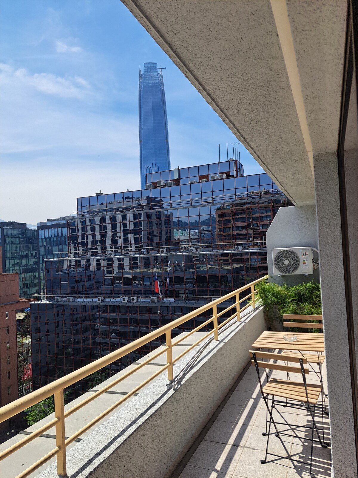 A 2 cuadras de Costanera Center, el centro comercial más grande de Latinoamérica. Disfruta de un entorno seguro, recepción con seguridad 24 hrs. A menos de una cuadra de estación de metro Los Leones, supermercado, centros comerciales. Increíble vista a la ciudad. Permite alojar hasta dos personas, cocina separada, baño completo.