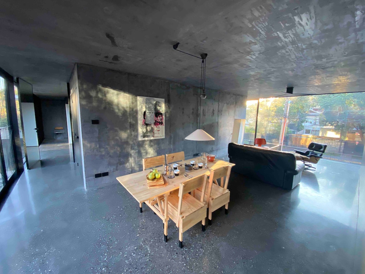 Nuestro loft "Roble" es un amplio espacio de arquitectura ecléctica y elegante de concepto abierto. Se encuentra ubicado en un área residencial y tranquila muy cerca del "Mall Costanera Center" en la riviera norte del río Mapocho. Será ideal para tu estadía vacacional/de trabajo en Santiago por sus bellos alrededores y alta conectividad de transporte.