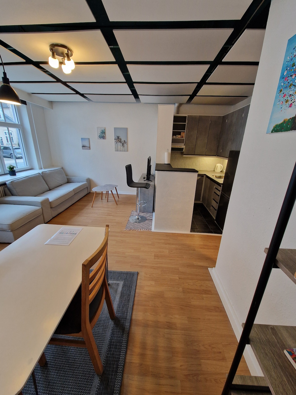 Lækker og stilfuld lejlighed midt i Skælskør centrum med synlige bjælker, brændeovn og klassisk dansk design. Slap af i lædersofaen, nyd et varmt bad i badekarret med en dejlig kop kaffe fra espresso maskinen, eller sov godt i den komfortable Dunlopillo elevationsseng. Lejligheden har fuldt køkken, 60" fladskærms-tv med tv streaming og hyggelig spiseplads. Kun 140 m til gågaden, 550 m til havnen og 3,5 km til Kobæk Strand. Rema 1000 og pizzaria ligger blot 100 m væk.