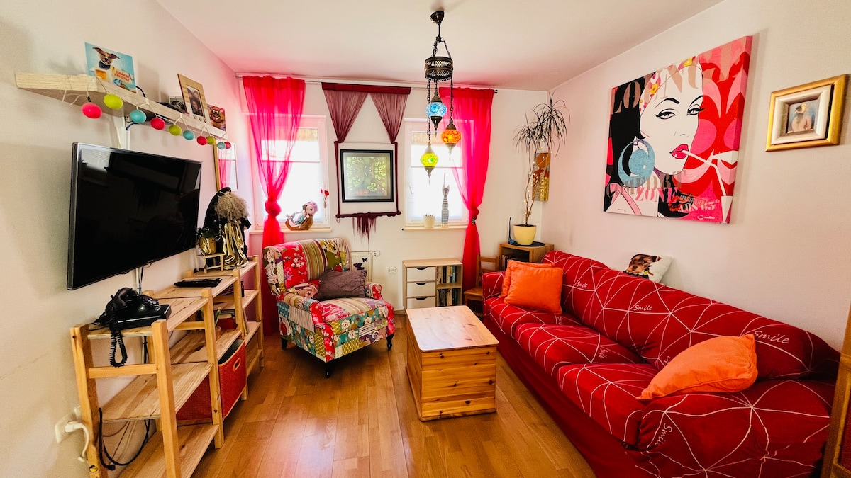 La casa de 150 m2 es muy luminosa, espaciosa y se encuentra cerca del bosque. Hay una acogedora y colorida sala de estar con un sofá, cocina retro, un dormitorio con cama individual, una habitación para niños con cama individual y sofá, y en la cama tamaño queen del ático. Por qué nuestro apartamento: - 3 dormitorios - apto para familias y niños. - hasta 7 personas. - Estacionamiento GRATUITO y wifi: 1,5 baños. - Tienda de comestibles, restaurante, café, cajero automático cerca. - A 20 minutos en auto del centro de la ciudad. - IMPUESTO municipal incluido en el precio. - Terraza con parrilla.