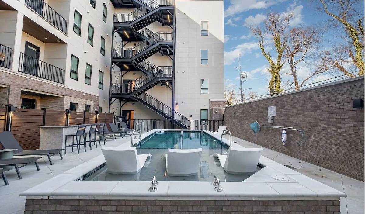 *PONTE EN CONTACTO CON EL ANFITRIÓN para conocer nuestras ofertas especiales actuales* Diseñamos este hermoso apartamento ático pensando en el arte, la elegancia y la comodidad. Te encantará tener todo lo necesario para una estancia maravillosa: una piscina climatizada estilo resort, patio, salón panorámico en la planta superior, gimnasio de dos pisos y pared de escalada, espacio de reunión de «biblioteca» de varios niveles y ¡UBICACIÓN PERFECTA! Camina 1 cuadra hasta el Music City Center y el Hall of Fame y solo 2 cuadras hasta Broadway. Tanto si viajas por trabajo como por placer, ¡este es tu lugar!
