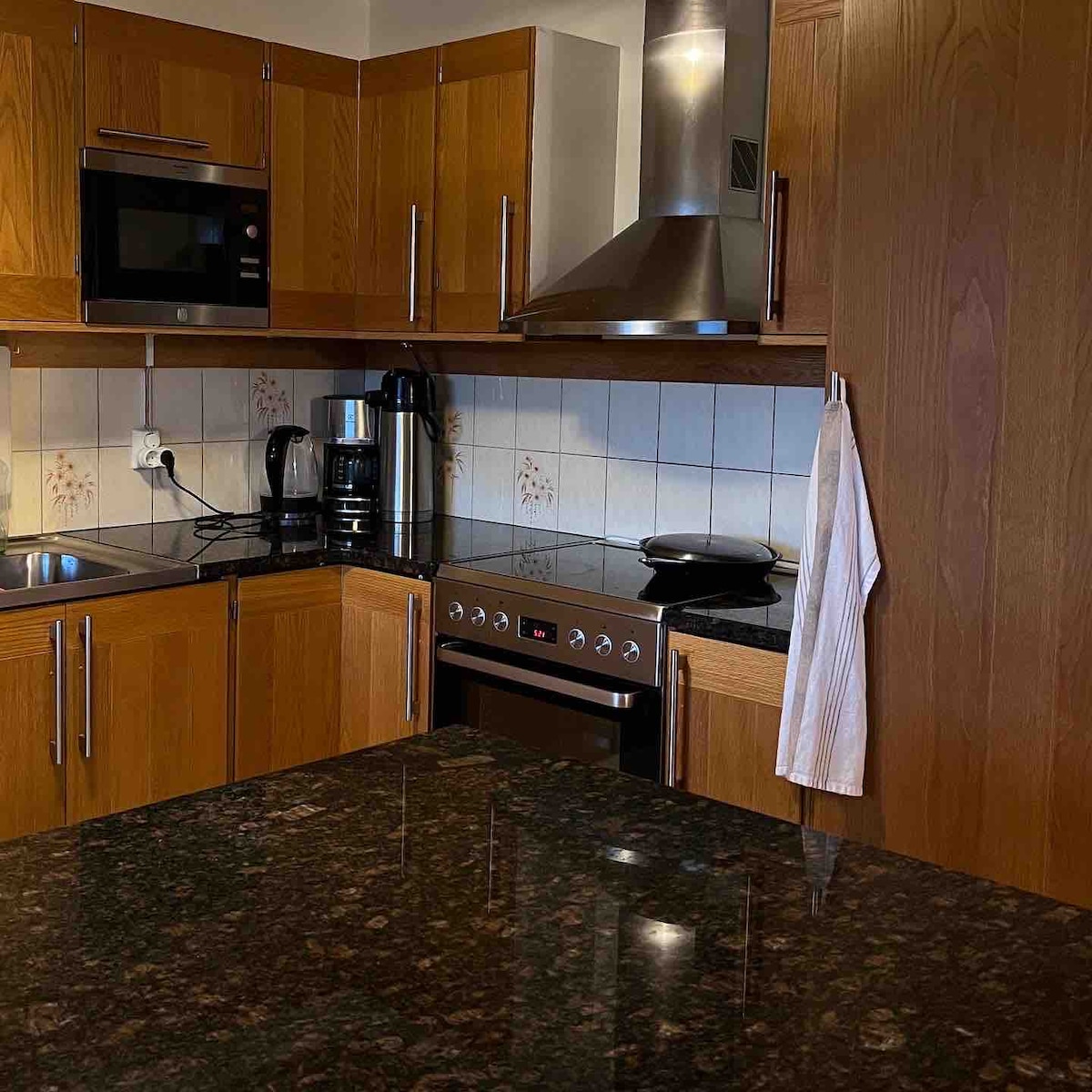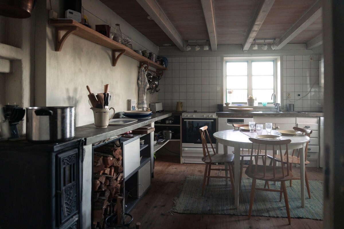La cocina y la sala de estar están interconectadas en un plano de piso espacioso con una altura de techo completa hasta la cresta. Estufa de leña Murad, perfecta tanto para la calidez como para el bienestar. En la misma planta, hay un pequeño dormitorio con una cama empotrada de 80 cm. Desde el salón tienes una vista clara hasta el loft donde se encuentra otro dormitorio. Aquí hay una cama de 180 cm y la posibilidad de sacar un colchón de 90 cm. Baño con bañera. Relájate con la familia en este espacio tranquilo.